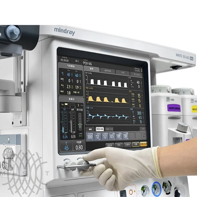 Дисплей с диагональю 15,1 дюйма с высоким разрешением и интуитивно понятным сенсорным пользовательским интерфейсом. WATO EX-65 Pro делает процесс проведения анестезии более наглядным. Визуализация процедуры самодиагностики системы, а также использование системы оповещений с графиками и схемами облегчает работу на сложных этапах.