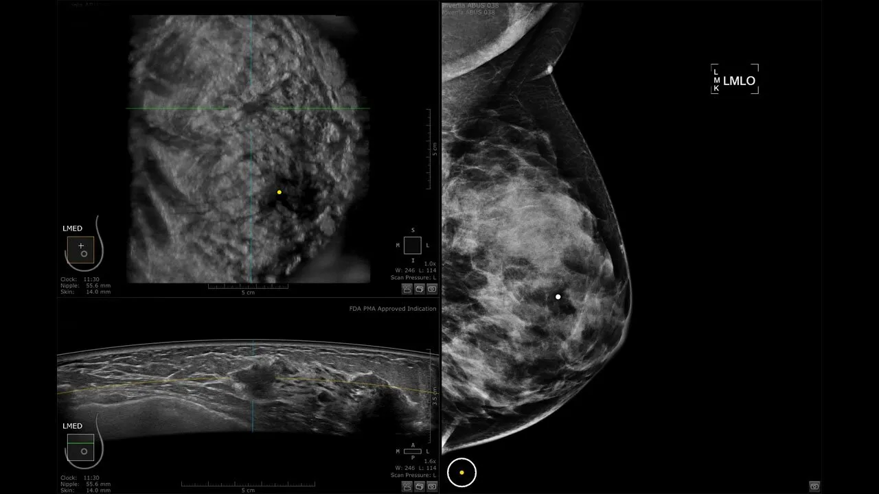 Как известно при исследовании женщин с плотной МЖ эффективность маммографии снижается (чувствительность метода может быть сокращена до 6-38%). При этом у 40% женщин молочная железа плотная, что само по себе увеличивает риск возникновения РМЖ, поэтому важно обеспечить дополнительный этап диагностики для повышения качества всего исследования. Invenia ABUS — новый подход к УЗ-диагностике молочных желёз — является инновационным ответом на данную проблему.
