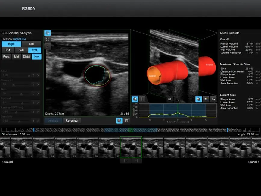 - S-3D Arterial Analysis - программа позволяющая провести автоматические измерения толщины стенки сонной артерии в объеме с последующей обработкой и различными режимами визуализации