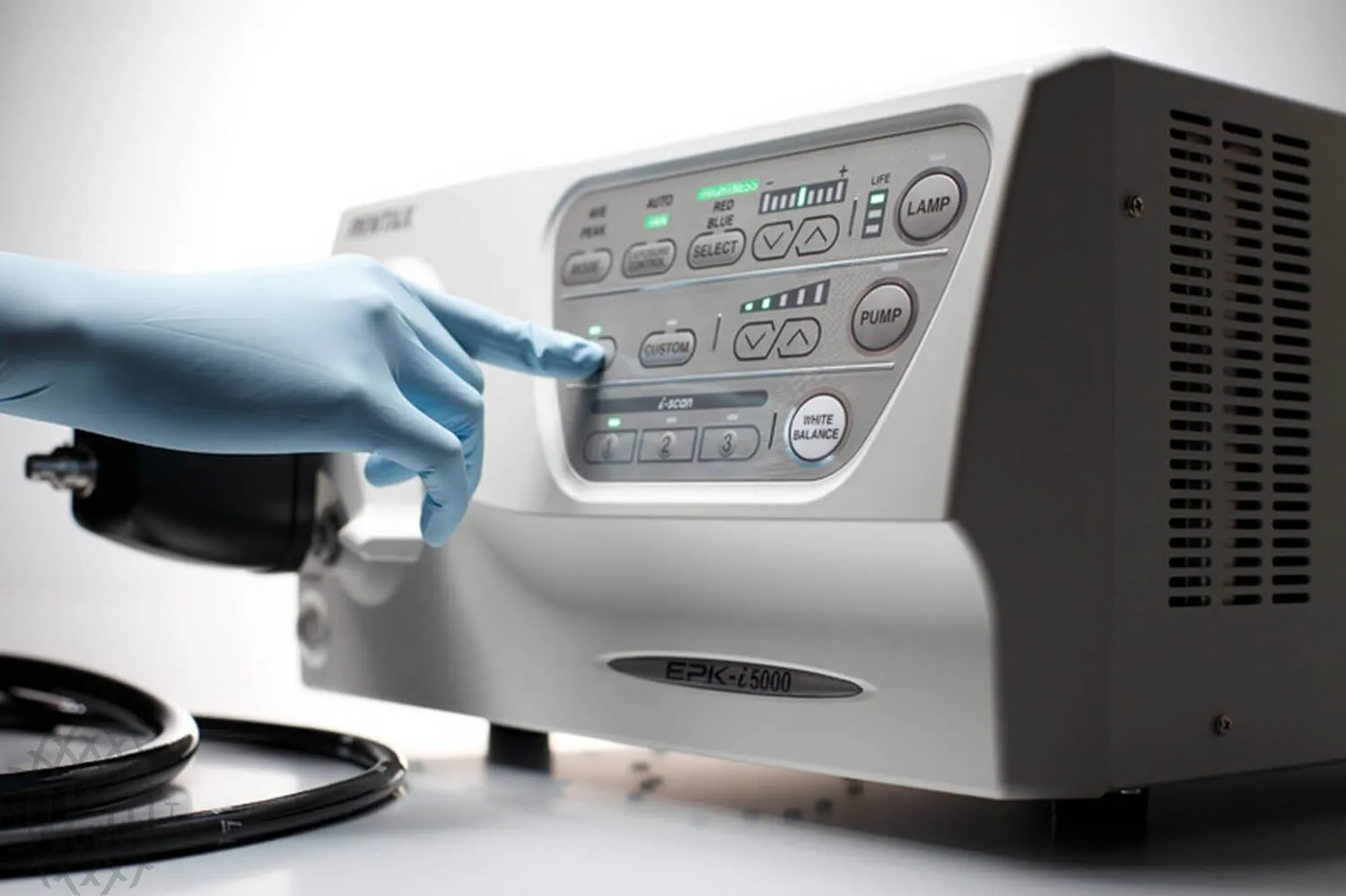 Передняя панель видеопроцессора EPK-i5000 была разработана для обеспечения лёгкого доступа к основным свойствам. Все основные функции могут управляться через легко идентифицируемые кнопки, а также существует индивидуально настраиваемая кнопка для функций, предпочитаемых врачом. Дополнительные продвинутые параметры доступны через встроенное клавиатурное меню.